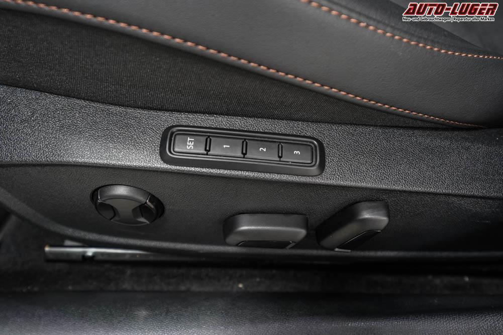 Beifahrersitz höhenverstellbar, Fahrersitz höhenverstellbar, Lederlenkrad, Lendenwirbelstütze, Mittelarmlehne vorne, Sitzbezug Stoff, Sportsitze, Gepäckraumabdeckung, Lenkrad höhenverstellbar, Ambiente-Beleuchtung, Elektrisch verstellbarer Fahrersitz mit Memory Funktion, Beheizbares Lenkrad, Supersportlenkrad, Isofix, Isofix Beifahrersitz, abgedunkelte Scheiben, 19 Zoll Alufelgen Polar, Dachreling schwarz, ABS, Alarmanlage, Außenspiegel elektrisch, Fensterheber elektrisch, Kopfairbags, Nebelscheinwerfer, Seitenairbags, Servolenkung, Sitzheizung vorn, DCC, Stabilitätskontrolle, Wegfahrsperre, Außenspiegel beheizbar, Beifahrerairbag, Fahrerairbag, Parkpilot hinten, Parkpilot vorne, Reifendruckkontrolle, Regensensor, Lichtsensor, Digital Cockpit, Anhängekupplung schwenkbar, Tempomat Abstand ACC, Fernlichtassistent, Notbremsassistent, Spurhalteassistent plus, Totwinkelassistent, Verkehrszeichenerkennung, Full LED-Scheinwerfer, Tagfahrlicht, Pannenset, Rückfahrkamera, Park-Assistent, Elektrische Heckklappe inkl. Virtual Pedal, KeylessEntry, StartStopSystem, Innenspiegel automatisch abbl., Müdigkeitswarnsystem, Notrufsystem, Klimaautomatik 3-Zonen, Geschwindigkeitsbegrenzer, Android Auto, Apple Carplay, Freisprecheinrichtung, Induktionsladestation, Sprachsteuerung, USB, Bluetooth, Bordcomputer, Radio-Navigationssystem, variabler Ladeboden, Full Link, Fahrprofilauswahl, Cerenomy Light, Exit Assist, Stauassistent, Pre-Crash, erweiterte Herstellergarantie 5 Jahre/100.000km, Schalensitze vorn,