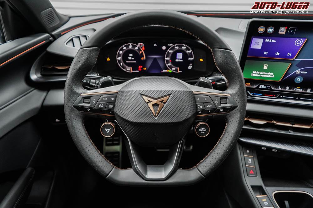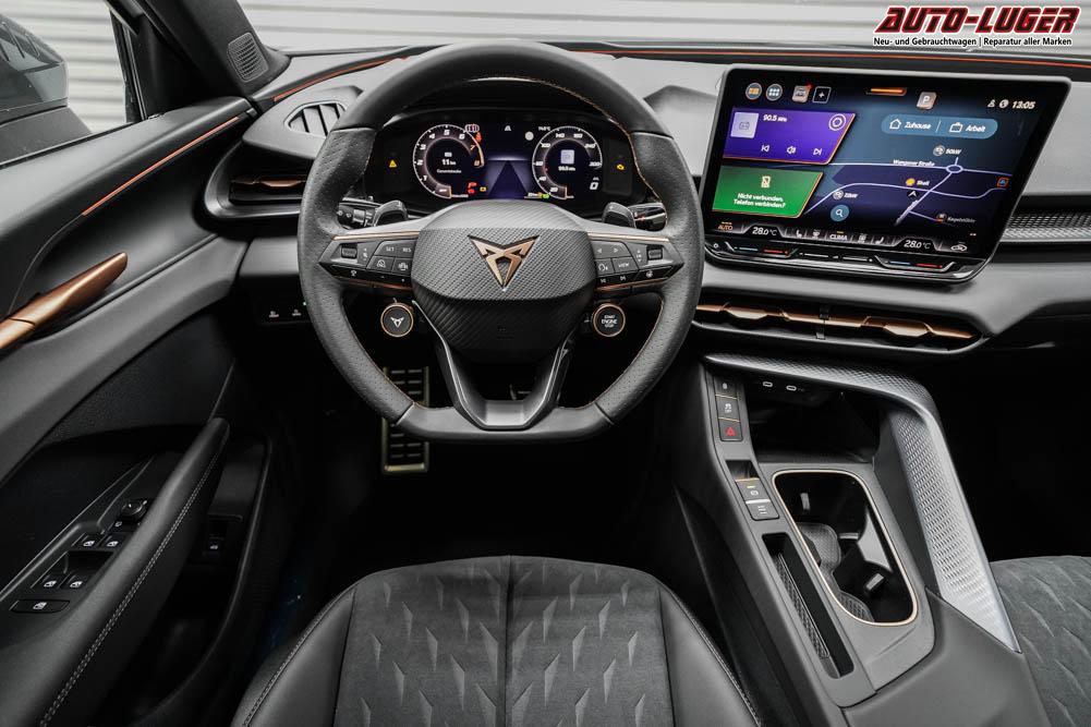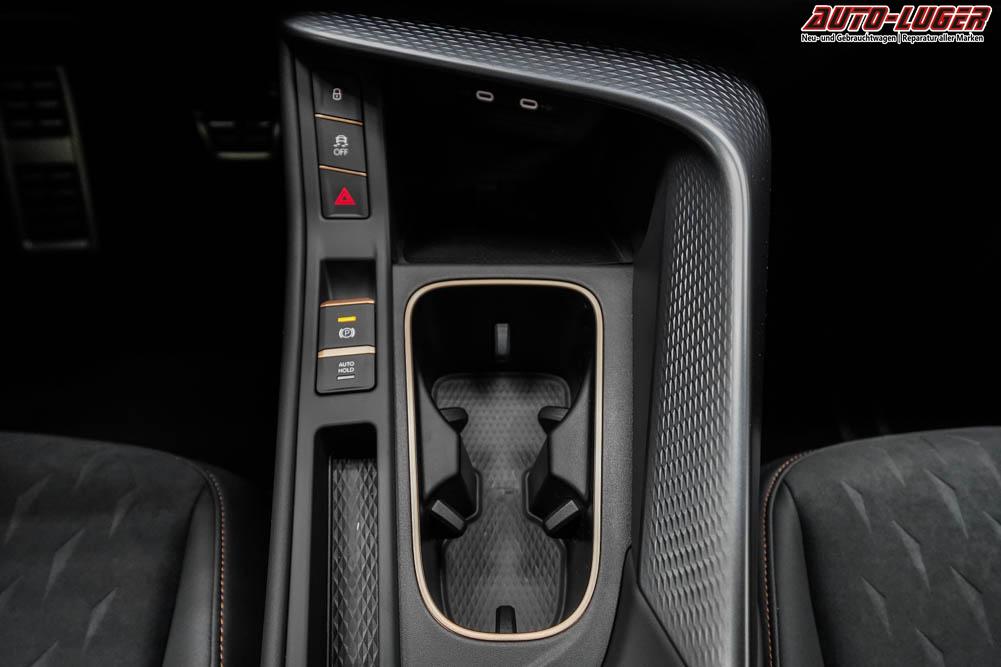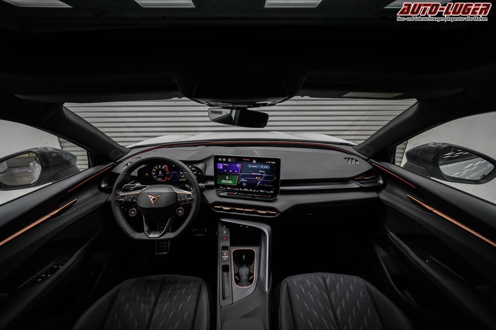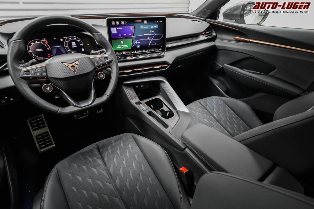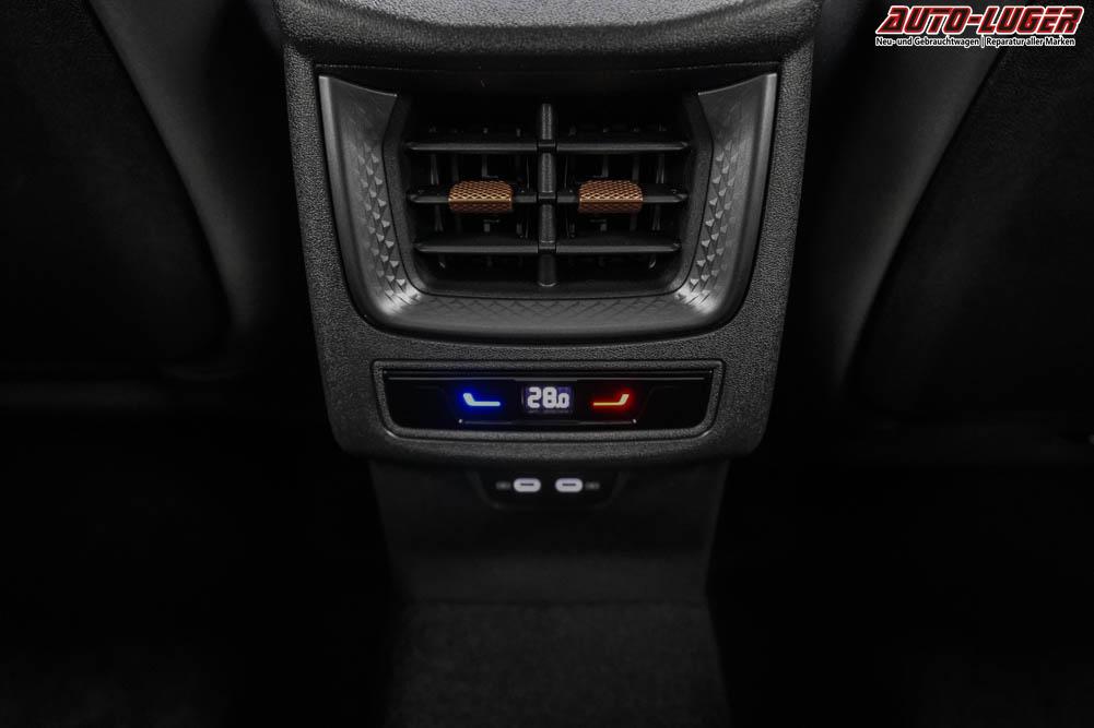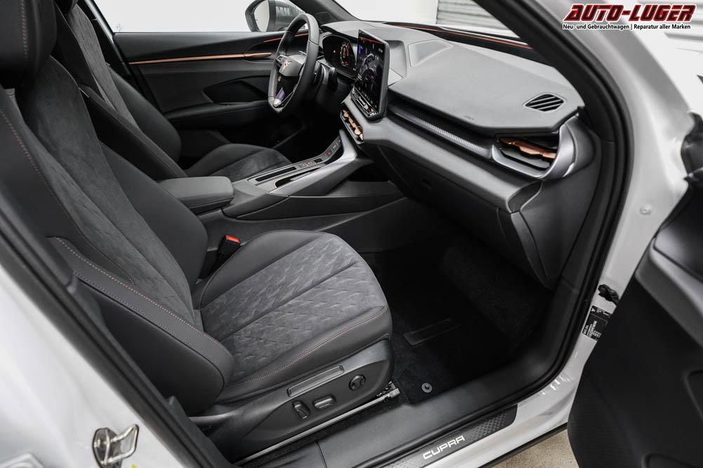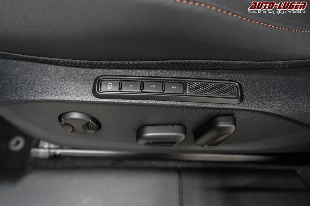 Beifahrersitz höhenverstellbar, Fahrersitz höhenverstellbar, Lederlenkrad, Lendenwirbelstütze elektr. vorne, Mittelarmlehne vorne, Sitzbezug Stoff, geteilt umklappbare Rücksitzlehne, Lenkrad höhenverstellbar, Sitzbezug Dinamica, Ambiente-Beleuchtung, Elektrisch verstellbare Vordersitze, Beheizbares Lenkrad, Multifunktionslenkrad, Isofix, abgedunkelte Scheiben, 20 Zoll Alufelgen Hadron Kupfer Z0E, Dachreling schwarz, Stoßfänger in Wagenfarbe, Türgriffe in Wagenfarbe, ABS, Alarmanlage, Außenspiegel elektrisch einstellbar, Fensterheber elektrisch, Nebelscheinwerfer mit Abbiegelicht, Schiebedach, Seitenairbags, Servolenkung, Sitzheizung vorne, DCC, ESP, Wegfahrsperre, Zentralverriegelung mit Funk, Außenspiegel beheizbar, Beifahrerairbag, Fahrerairbag, Parkpilot hinten, Parkpilot vorne, Reifendruckkontrolle, Head-up Display, Regensensor, Lichtsensor, Digital Cockpit, Anhängekupplung schwenkbar, Tempomat Abstand ACC, Fernlichtassistent, Notbremsassistent, Spurhalteassistent, Totwinkelassistent, Verkehrszeichenerkennung, HD Matrix-LED-Scheinwerfer, LED-Tagfahrlicht, Pannenset, Rückfahrkamera, Park-Assistent, Panoramadach, Elektrische Heckklappe, Kessy, StartStopSystem, Innenspiegel automatisch abbl., Müdigkeitswarnsystem, Notrufsystem, Klimaautomatik 3-Zonen, 360-Grad-Kamera, Android Auto, Apple Carplay, Freisprecheinrichtung, Induktionsladestation, Touchscreen, USB Typ-C, Radio DAB, Bluetooth, Bordcomputer, Navigationssystem, Ausweich- und Abbiegeassistent, Fahrprofilauswahl, Full Link, Dachhimmel schwarz, Ladeboden variabel, LED-Rückleuchten in 3D-Optik, 5 Jahre bis max. 100.000km Herstellergarantie, Performance Reifen (R0Z), Fahrersitz mit Memoryfunktion, Außenspiegel mit Memoryfunktion, Trailer Assist, Travel Assist, Stauassistent, Notfallassistent,