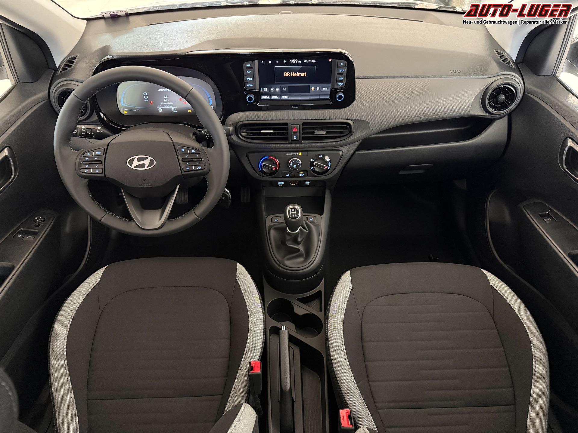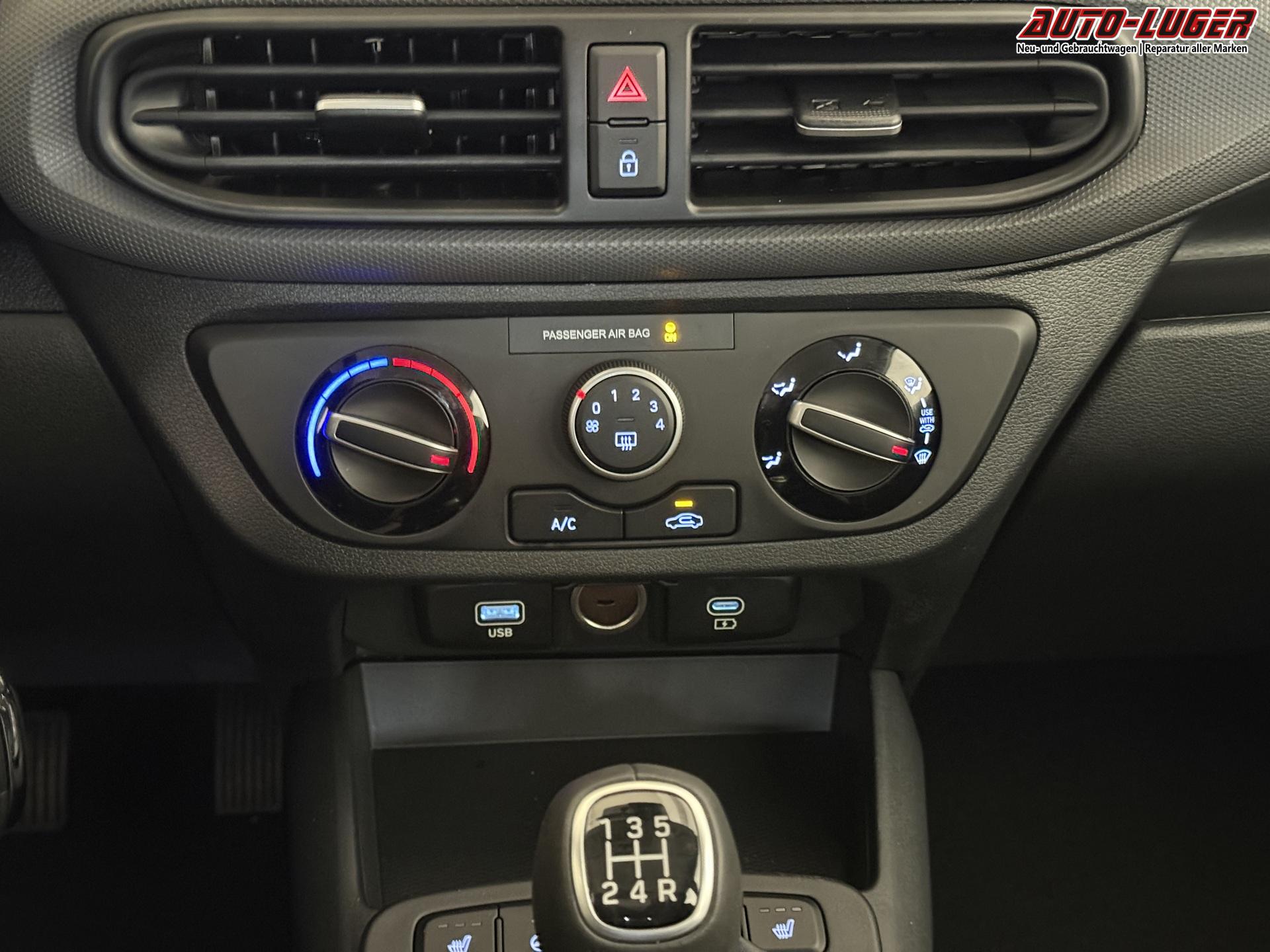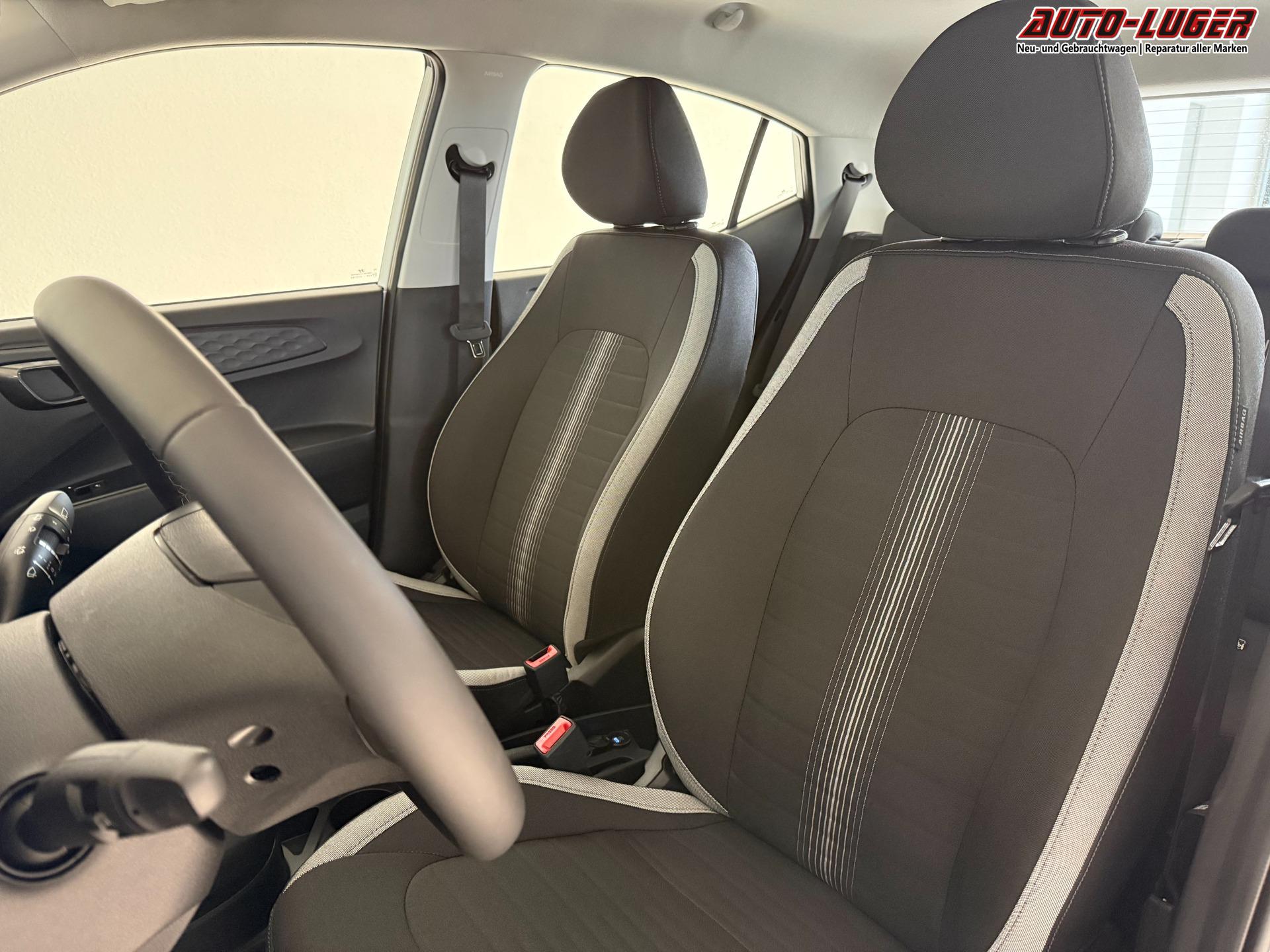 Hyundai i10 GO 1.0 MT 46 kW (63 PS) Klimaanlage, Sitzheizung, Lenkradheizung, Navigationssystem, Radio, DAB, Bluetooth, Android Auto, Apple CarPlay, Rückfahrkamera, Einparkhilfe hinten, Fernlichtassistent, Lichtsensor, uvm.