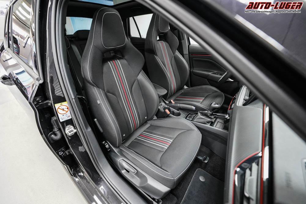 Beifahrersitz höhenverstellbar, Fahrersitz höhenverstellbar, Lederlenkrad, Lendenwirbelstütze, Mittelarmlehne vorne, Sitzbezug Stoff, Sportsitze, Gepäckraumabdeckung, geteilt umklappbare Rücksitzlehne, Lenkrad höhenverstellbar, Multifunktionssportlenkrad, Isofix, Isofix Beifahrersitz, abgedunkelte Scheiben, 18 Zoll Alufelgen Ursa schwarz, Stoßfänger in Wagenfarbe, Türgriffe in Wagenfarbe, ABS, Außenspiegel elektrisch anklappbar, Fensterheber elektrisch, Klimaautomatik, Kopfairbags, Nebelscheinwerfer, Seitenairbags, Servolenkung, Sitzheizung, Sport Chassis Control, ESP, Tempomat, Wegfahrsperre, Zentralverriegelung mit Funk, Außenspiegel beheizbar, Beifahrerairbag, Fahrerairbag, Parkpilot hinten, Parkpilot vorne, Reifendruckkontrolle, Regensensor, Lichtsensor, Virtual Cockpit, Anhängekupplung schwenkbar, Spurhalteassistent, Verkehrszeichenerkennung, Matrix LED-Scheinwerfer, Tagfahrlicht LED, Kurvenlicht, Pannenset, Rückfahrkamera, Panoramadach, Elektrische Heckklappe Virtual Pedal, KeylessEntry, StartStopSystem, Innenspiegel automatisch abbl., Berganfahrassistent, Müdigkeitswarnsystem, Notrufsystem, Schaltwippen, Geschwindigkeitsbegrenzer, Android Auto, Apple Carplay, Freisprecheinrichtung, Induktionsladestation, USB, Radio, Radio DAB, Bluetooth, Bordcomputer, Smart Link,