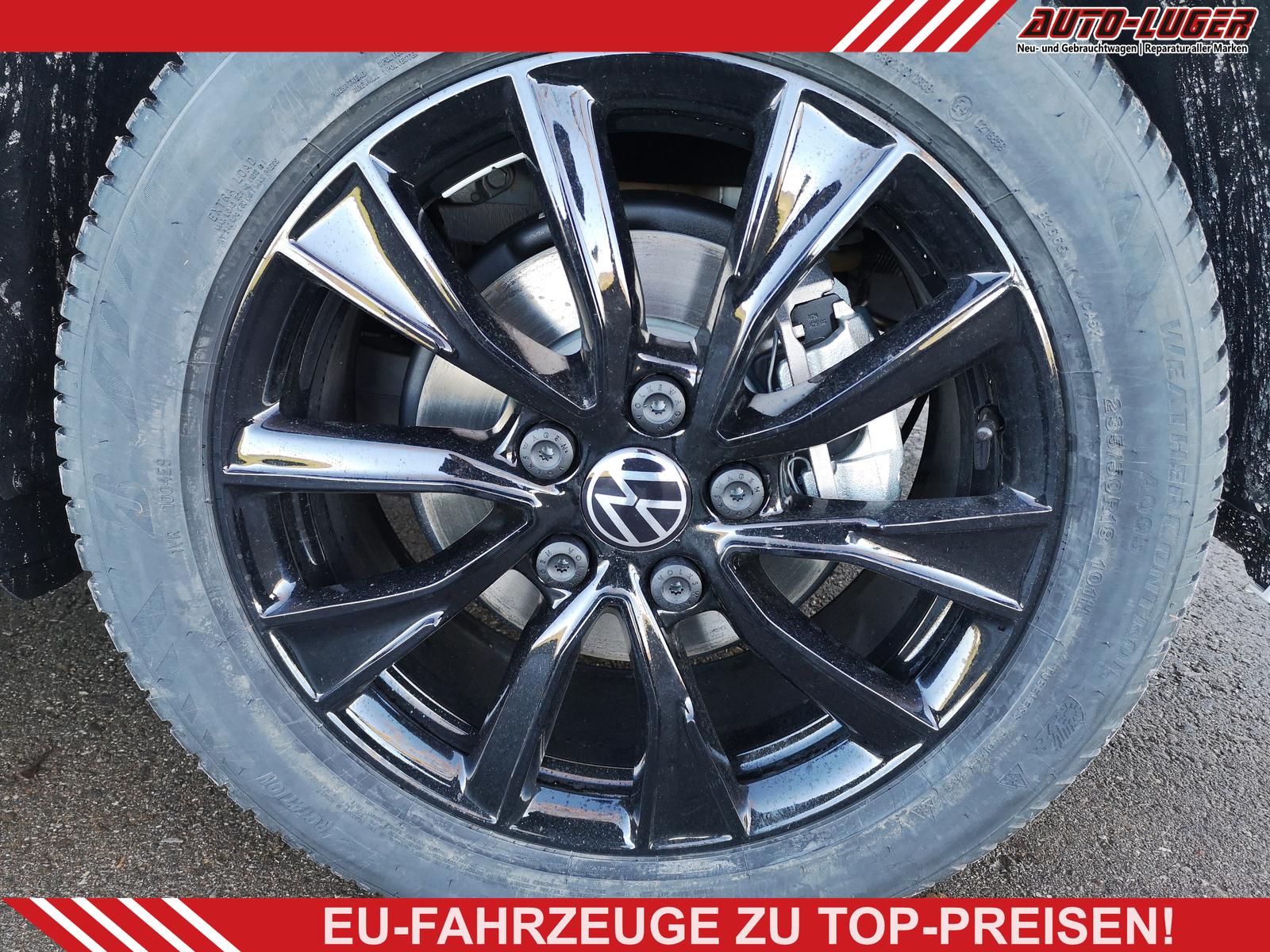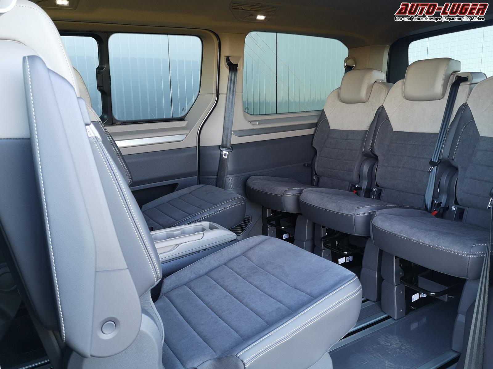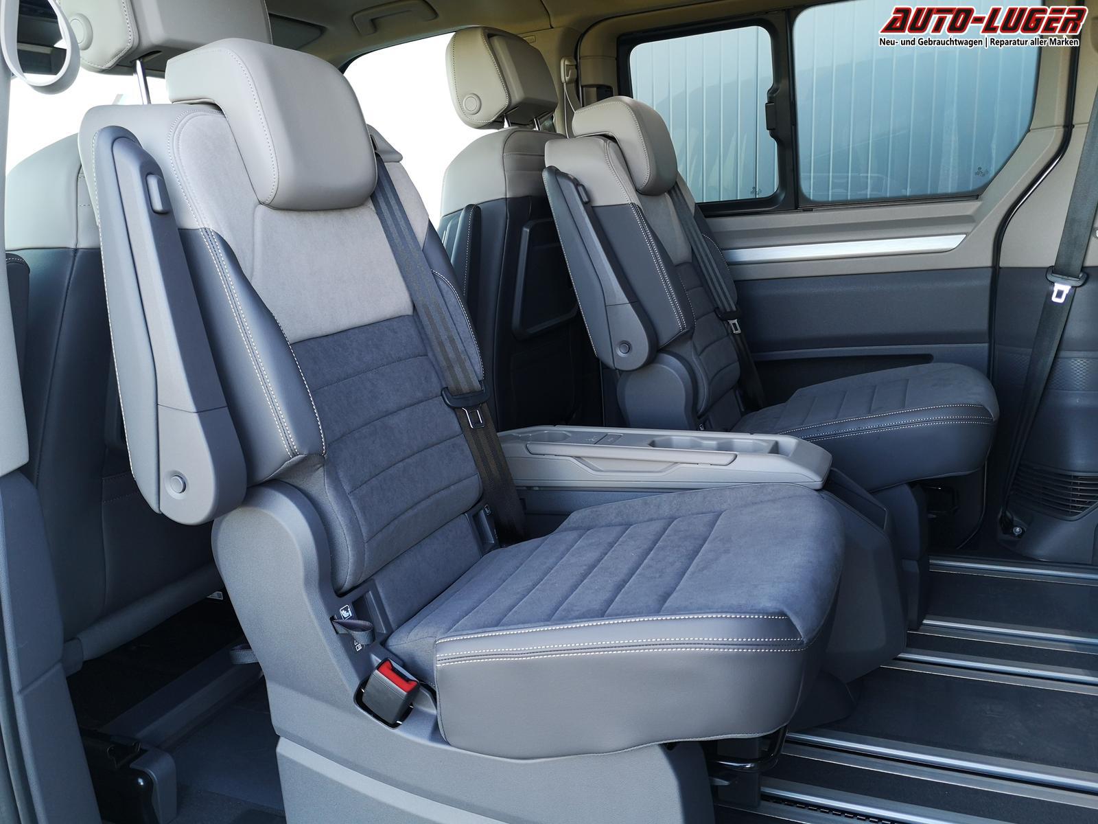 Fahrzeug 8-fach-bereift, Leichtmetallräder 7,5J x 18 (Sport Edition Design TN28, schwarz glanzgedreht) mit Sommerreifen 235 50 R18, Leichtmetallräder 7,5 J x 18 ""Toshima"" schwarz mit Winterreifen (M+S Kennung inkl. Schneeflocke / Allwetterreifen), (0NP) Bulliplakette am Kotflügel, (1U3) Bodenschienen mit Multifunktionstisch inkl. 3 Becherhalter, verschiebbar auf der vollständigen Länge des Schienensystems, (2FT) Multifunktionslederlenkrad beheizbar mit Schaltwippen, (4A3) Sitzheizung vorne, (4GX) Frontscheibe beheizbar und geräuschdämmend, (4K5) Zentralverriegelung Keyless Advance (schlüsselloses Öffnen und Starten),(6I6) Travelassistent, (6KF) Scheinwerferleiste hinterleuchtet, (7AL) Diebstahlwarnanlage, (7UY) Radio Navigationssystem Discover Pro, (9AH) Klimaanlage ""Air Care Climatronic"", (N2S) Sitzbezug Bi-Colour ""ArtVelours"", (1M6) Anhängerkupplung schwenkbar, (Z8A) Schiebefenster im Fahrgastraum links und rechts, Fenster ab B-Säule abgedunkelt, (ZBR) 7 Sitzer: Sitzvariante 2-2-3 (Vis-a-Vis entgegen der Fahrrichtung) inkl. 4 Armlehnen.